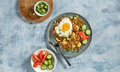 Pour melted milk chocolate over the dry mixture and combine. Pour mixture into a foil-lined baking dish and allow to set in the fridge for 30 minutes.